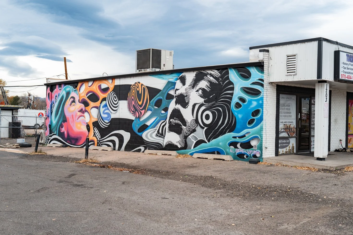 Fort Collins Mural Project (FCMP) artists retain copyright of their work executed through FCMP. This means that you may not: distribute reproductions including but not limited to: photography of artworks for profit without express permission from the artist(s) that completed said works. You may share photos of the artwork for personal social media accounts or websites as long as the artist(s) & FCMP are credited on or directly adjacent to the image. EXAMPLE: Mural by “Jane Gold” for Fort Collins Mural Project, photographed by: “John Silver”. Commercial use of the imagery is prohibited without express consent from the artist(s).